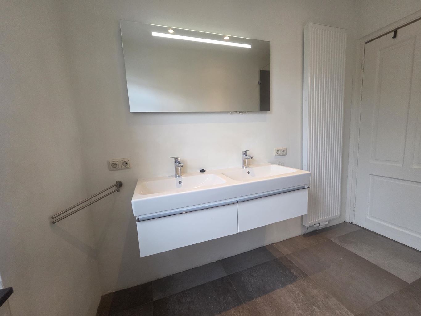 On the first floor 2 bedrooms (14m² and 16m²) are situated. One bedroom is at the front and the other at the rear of the house. Bedrooms both with laminate floors and spots in the ceiling. The bathroom (6m²) is equipped with a bath, shower and sink.