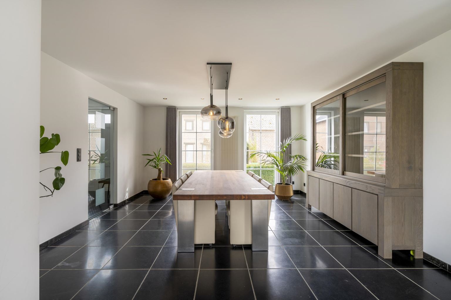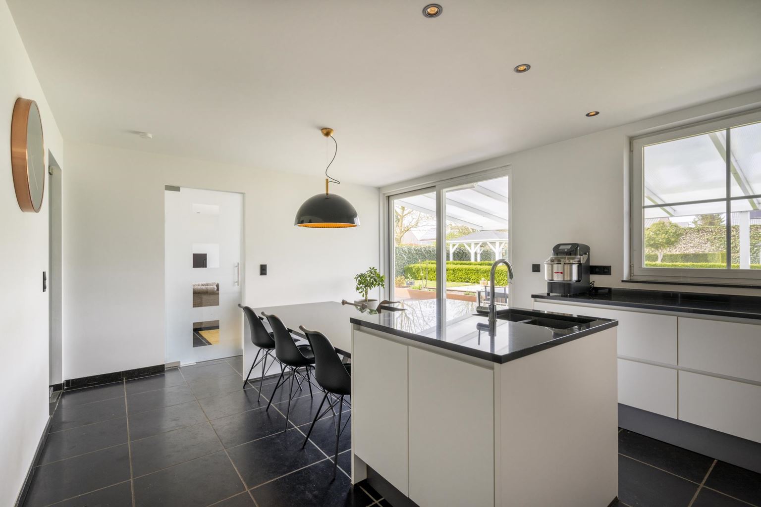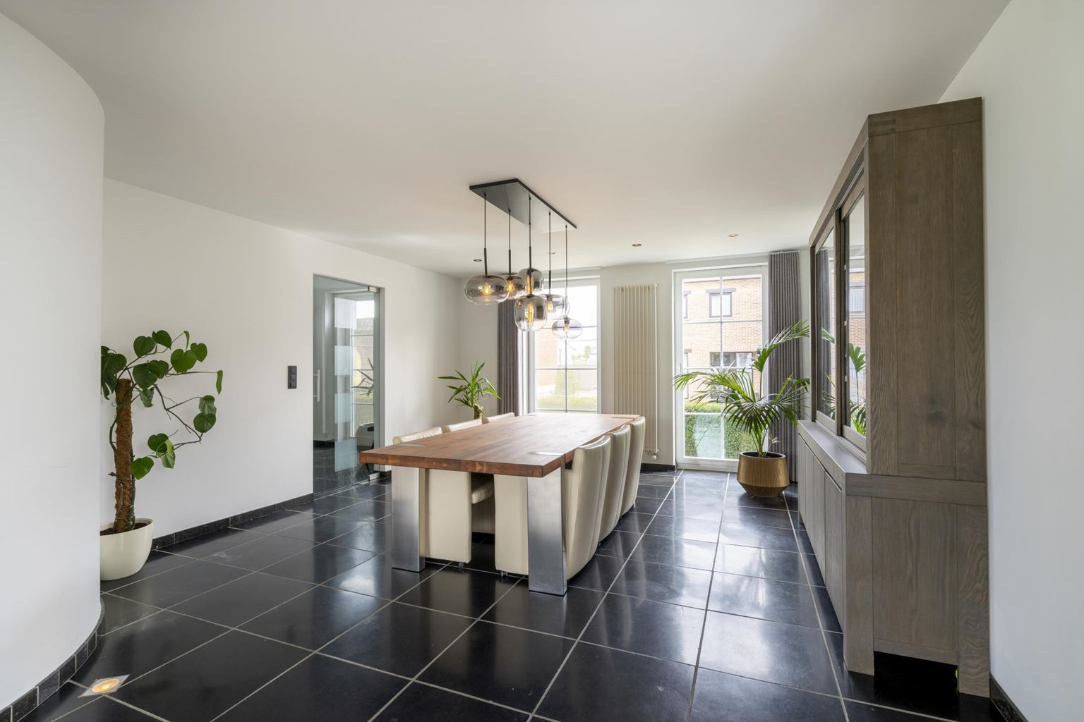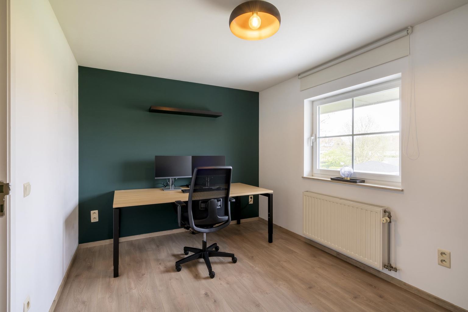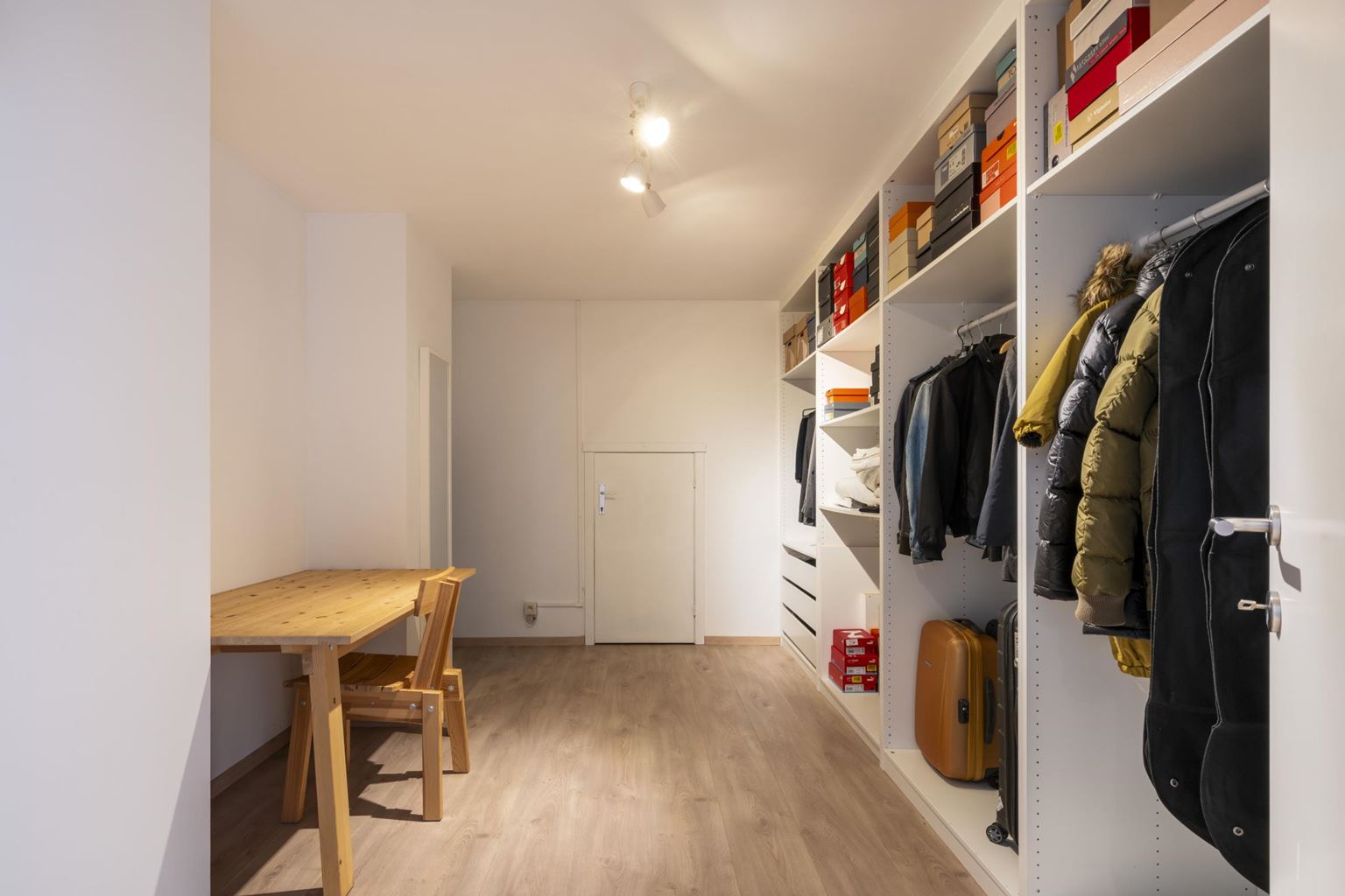 Bij het betreden van de woning wordt u verwelkomd in een ruime inkomhal met apart gastentoilet. Aansluitend bevindt zich een afgewerkte bureauruimte voorzien van inbouwkasten. De lichtrijke leefruimte vormt het hart van de woning en vloeit naadloos over in de volledig uitgeruste keuken. Deze stijlvolle keuken werd vernieuwd in 2016 en is voorzien van hoogwaardige toestellen, waaronder een koelkast, combi-oven, stoomoven, inductiekookplaat, dampkap, een recent vernieuwde vaatwasser (2025) en een ingebouwde koffiemachine.