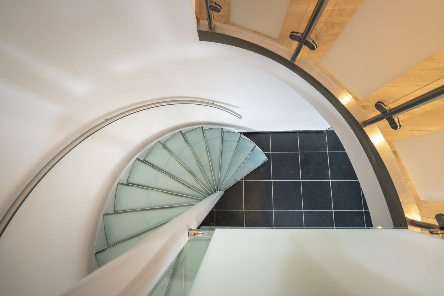 Op het gelijkvloers werd gekozen voor een elegante zwarte natuurstenen vloer, die zorgt voor een strakke en tijdloze uitstraling. De verdieping is afgewerkt met kwalitatief laminaat, wat bijdraagt aan een warme en onderhoudsvriendelijke sfeer.