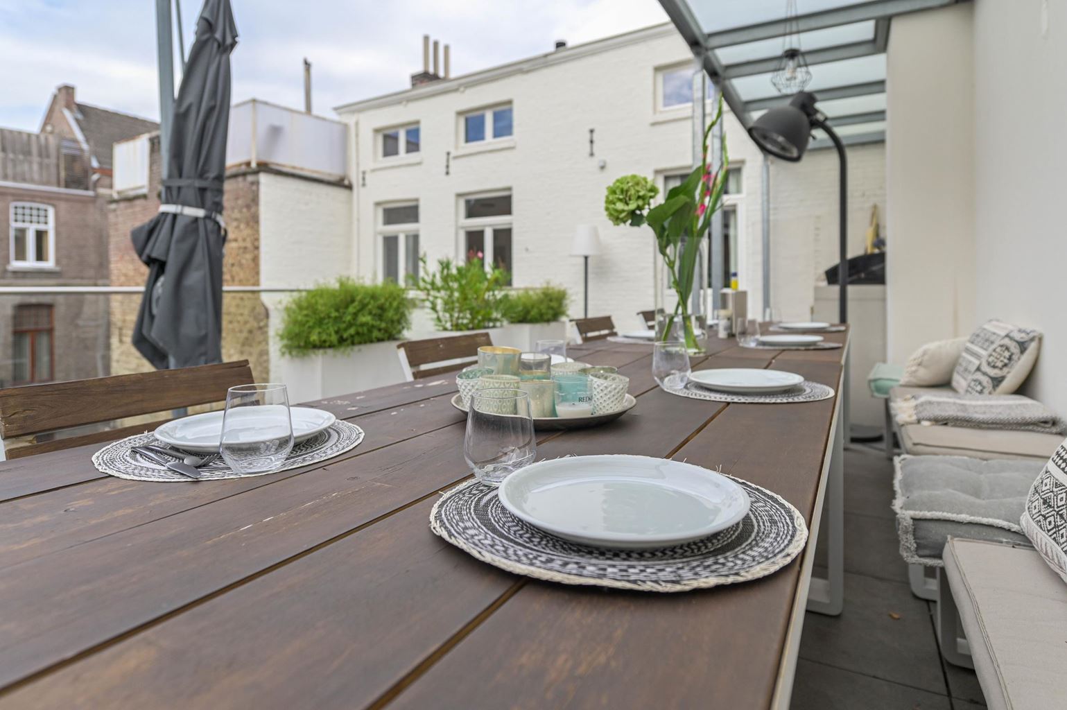 De dakterrassen zijn een groot pluspunt. Hier geniet je in alle rust van het uitzicht over de stad en de levendige sfeer van Maastricht, terwijl je beschikt over je eigen buitenruimte.