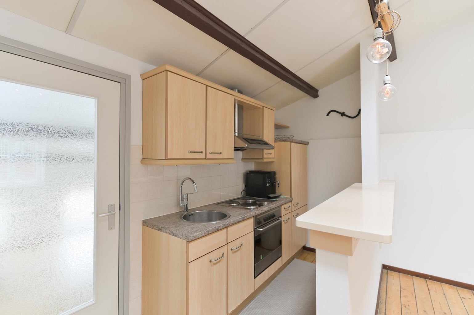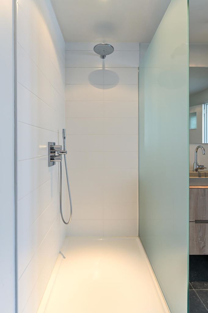 Hier vind je een royale woonkamer met open keuken, twee slaapkamers, een badkamer met ligbad en witgoedaansluitingen, een separaat toilet en toegang tot een tweede dakterras. Een extra kast biedt ruimte aan twee HR-ketels en een boiler.
