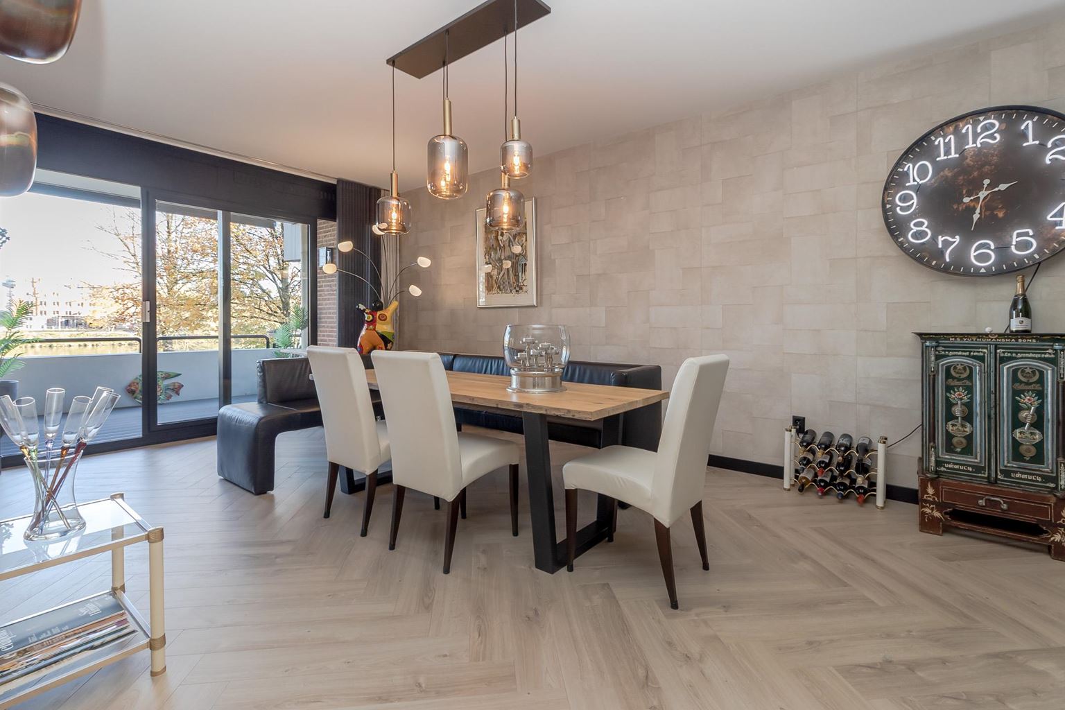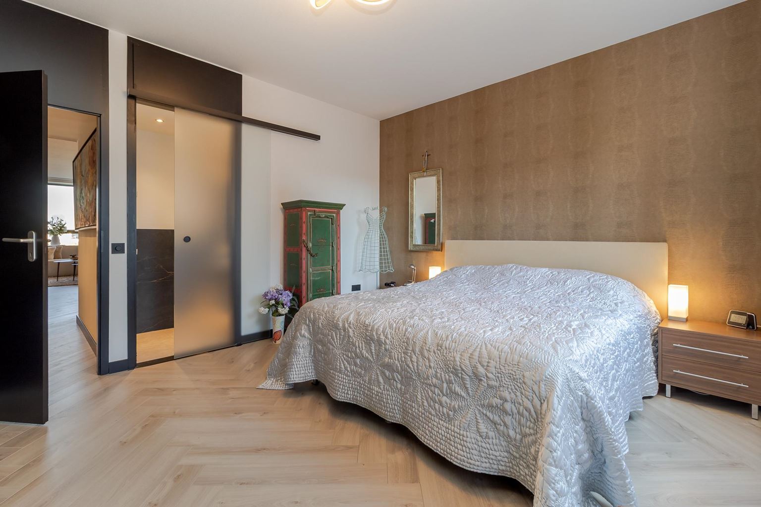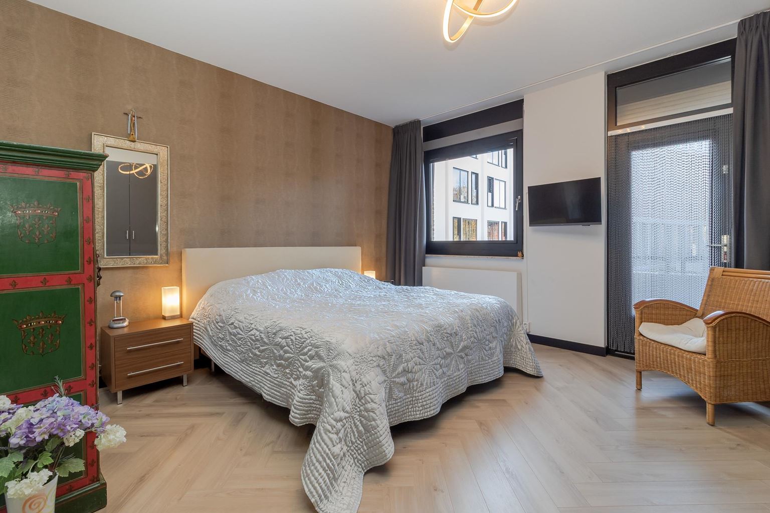 - Gehele appartement voorzien van visgraat parketvloer (m.u.v. badkamer en toilet);