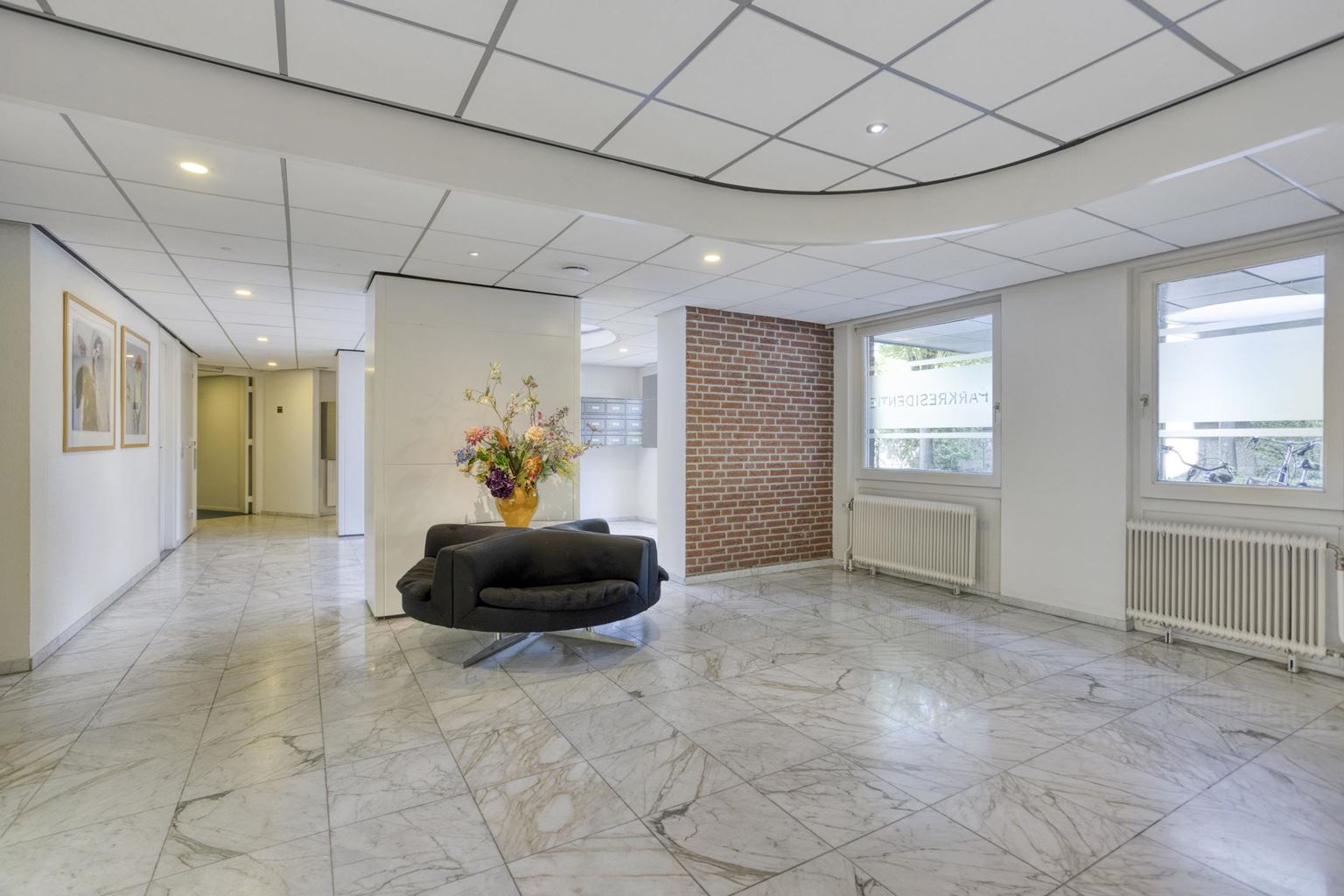 U komt de Parkresidentie binnen via de luxe afgewerkte algemene inkomsthal. Bij de ingang bevinden zich de video intercom en de brievenbus. De woning kan worden bereikt met de lift of via het trappenhuis. Op de begane grond bevinden zich een aantal vergaderruimtes, een biljartkamer, loungeruimte en 4 logeerkamers met een eigen badkamer. In de groene tuin rondom het wooncomplex ligt voor de bewoners een gezamenlijk terras met uitzicht over de rivier. Vanuit de tuin loop je zo het wandelpad langs De Maas op!