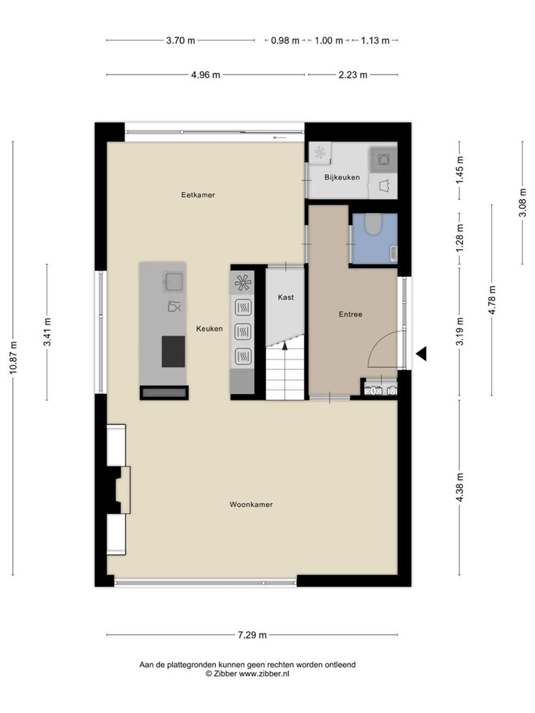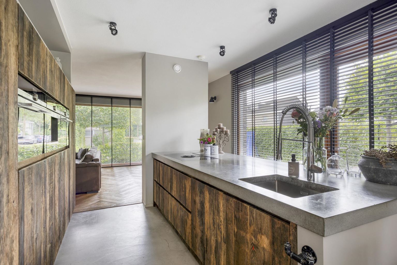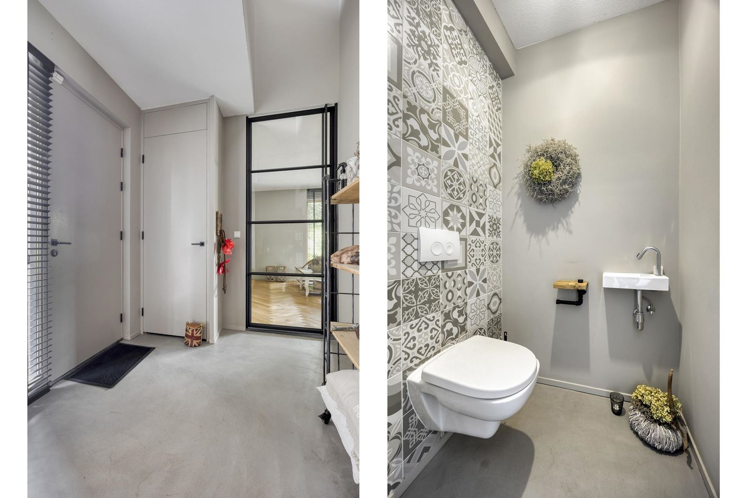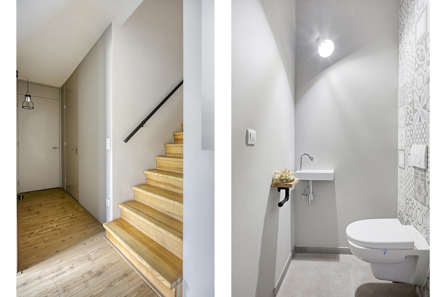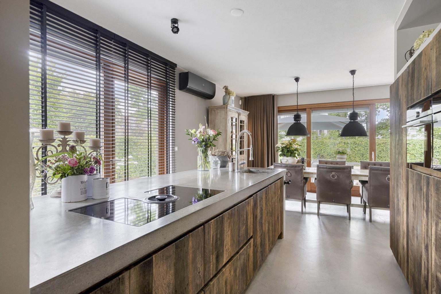 Bij binnenkomst komt u terecht in een ruime entree, die direct toegang biedt tot het toilet en de meterkast. Vanuit de hal heeft u via een moderne stalen deur toegang tot de licht overgoten woonkamer, die een warme en uitnodigende sfeer uitstraalt. De woonkamer loopt door in de open leefkeuken, een moderne ruimte die van alle gemakken is voorzien. De keuken is uitgerust met hoogwaardige inbouwapparatuur, waaronder een inductiekookplaat met geïntegreerde afzuiging, een koelkast, vaatwasser, spoelbak, oven, magnetron en een koffieapparaat. Aangrenzend aan de keuken bevindt zich de eetkamer met een brede schuifpui naar de achtertuin. Dit is de ideale plek om samen te komen met familie en vrienden, of om te genieten van een uitgebreid diner. Vanuit de eetkamer heeft u opnieuw toegang tot de entree en de praktische bijkeuken, die is voorzien van witgoedaansluitingen.
