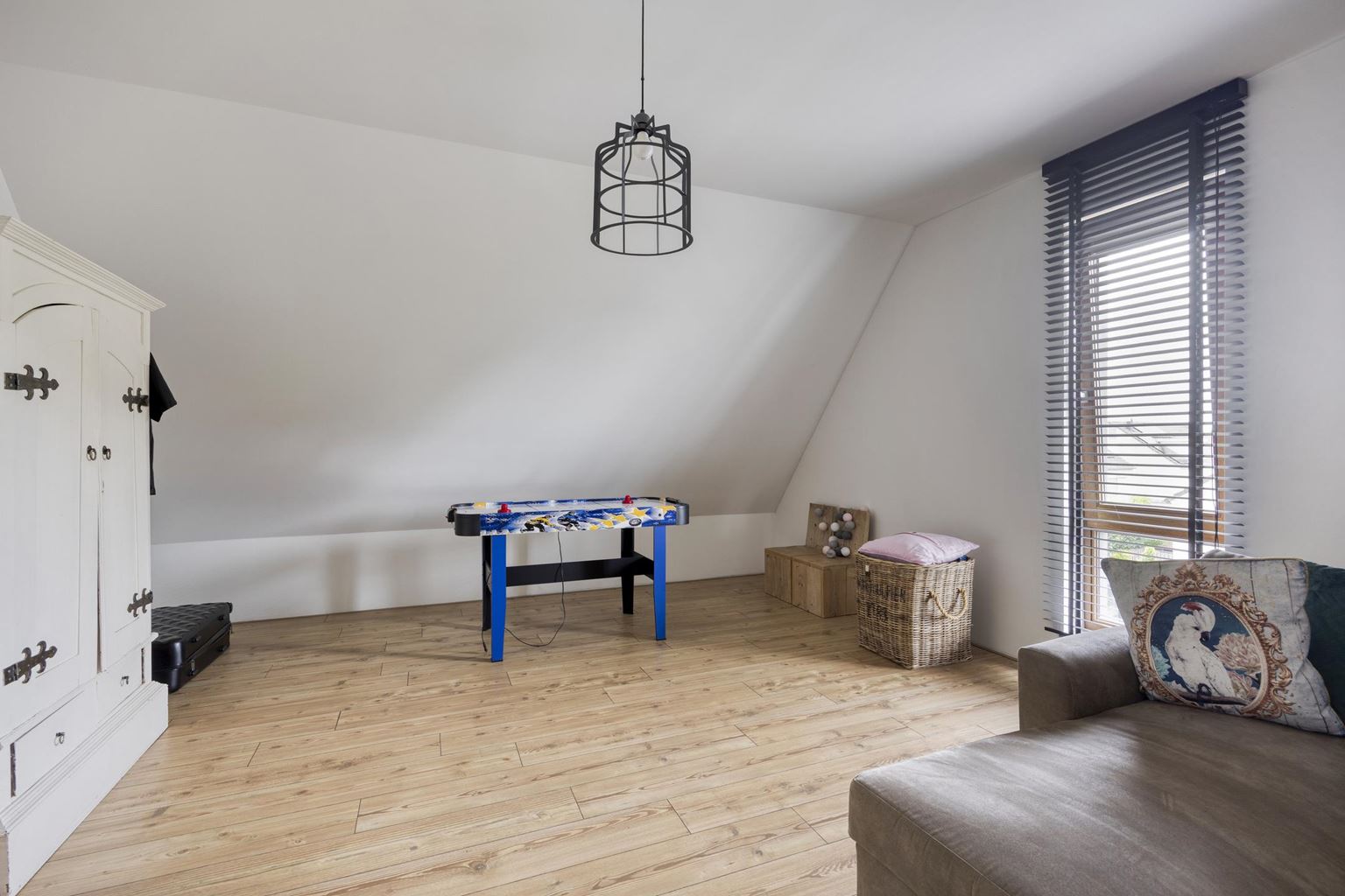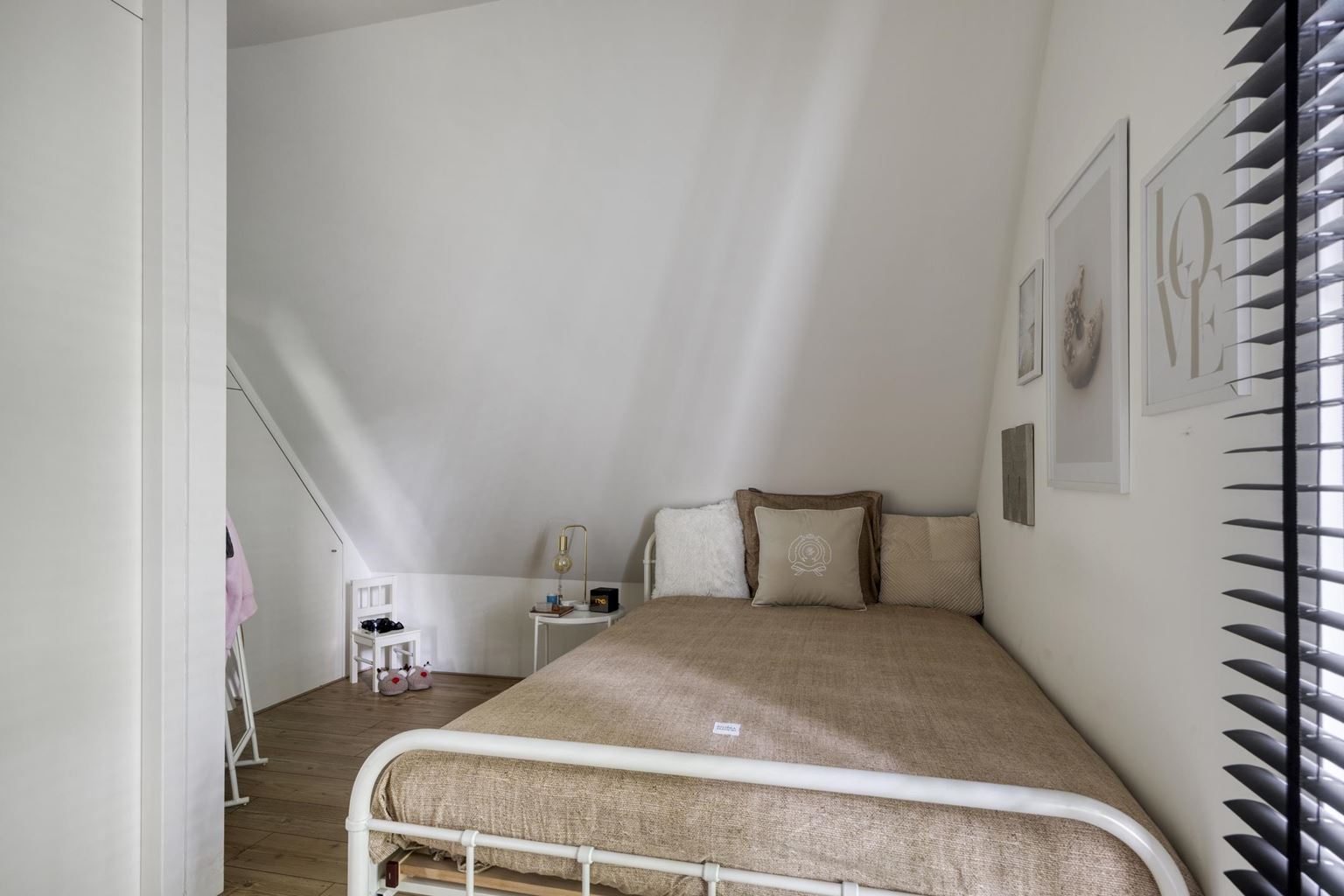 De overloop op de tweede verdieping biedt toegang tot 2 slaapkamers en een badkamer. Slaapkamer 4 voorzien van grote ramen die zorgen voor veel natuurlijk licht. Deze kamer is strak en modern ingericht. Slaapkamer 5 is eveneens stijlvol en biedt toegang tot een ruime berging, waarin zich de Cv-installatie bevindt. Badkamer 2 is voorzien van een inloopdouche, wastafel in meubel en derde toilet.