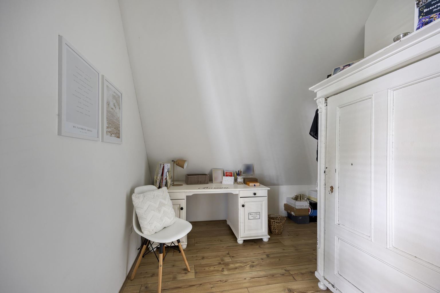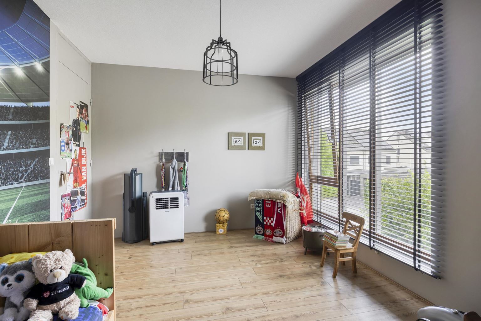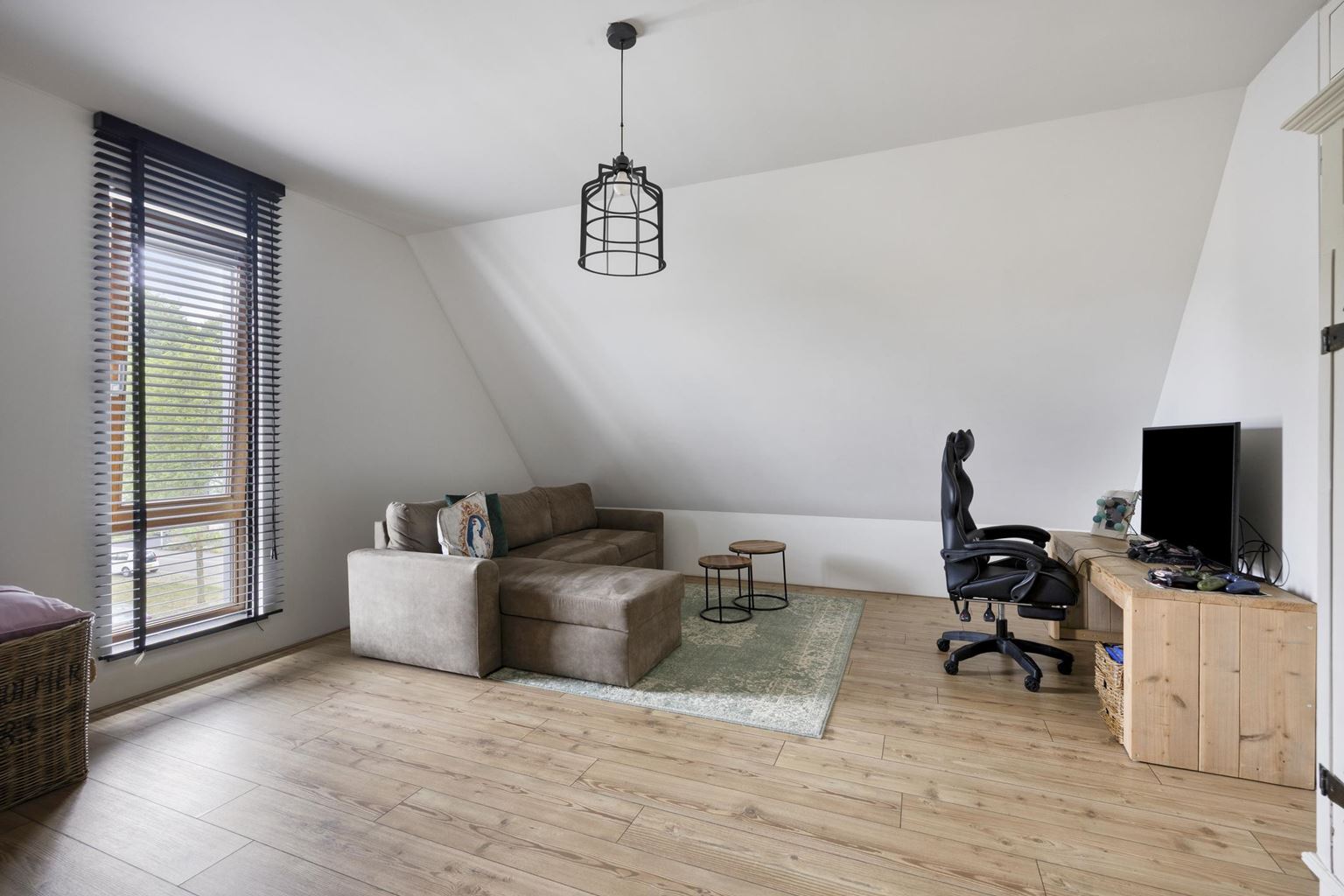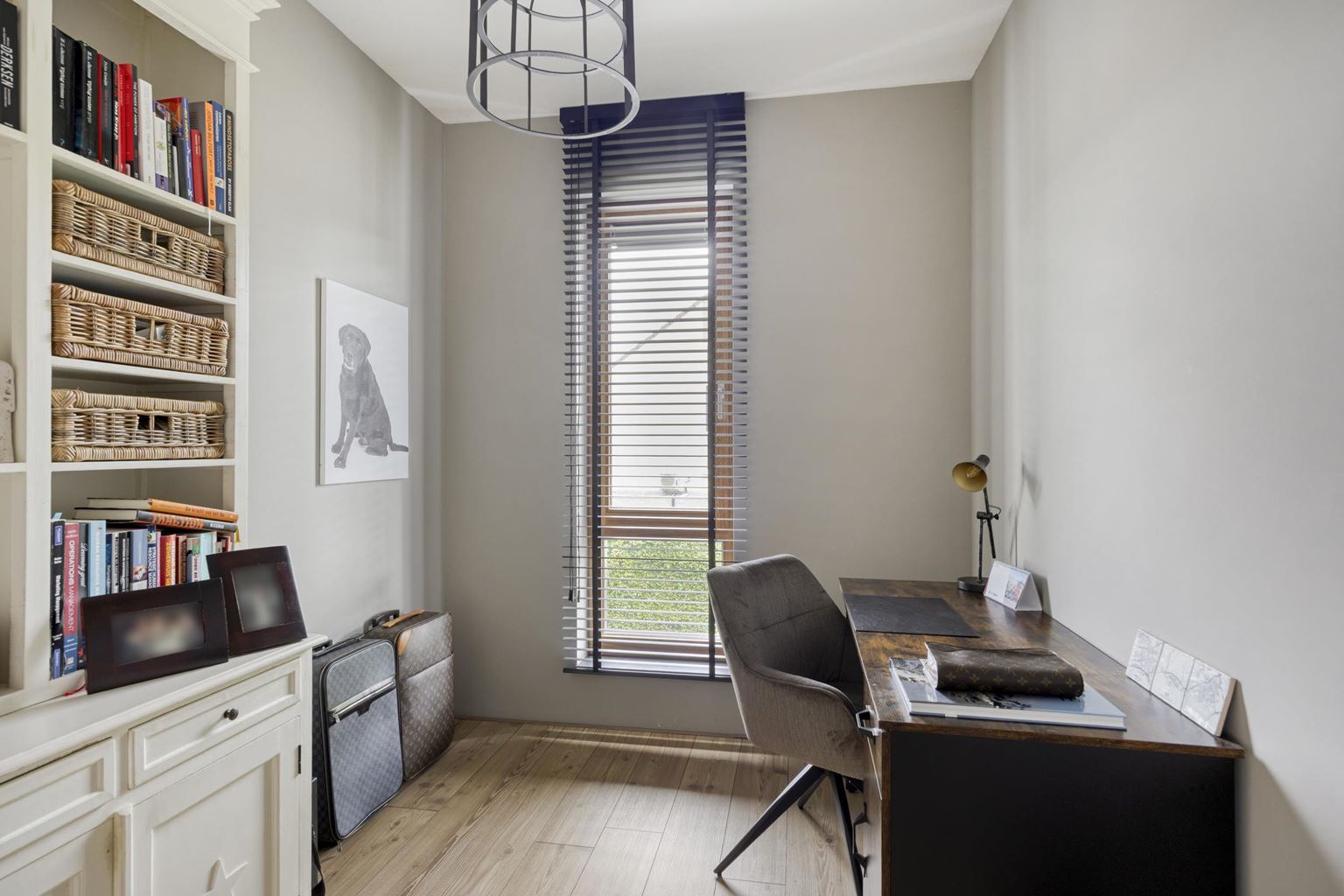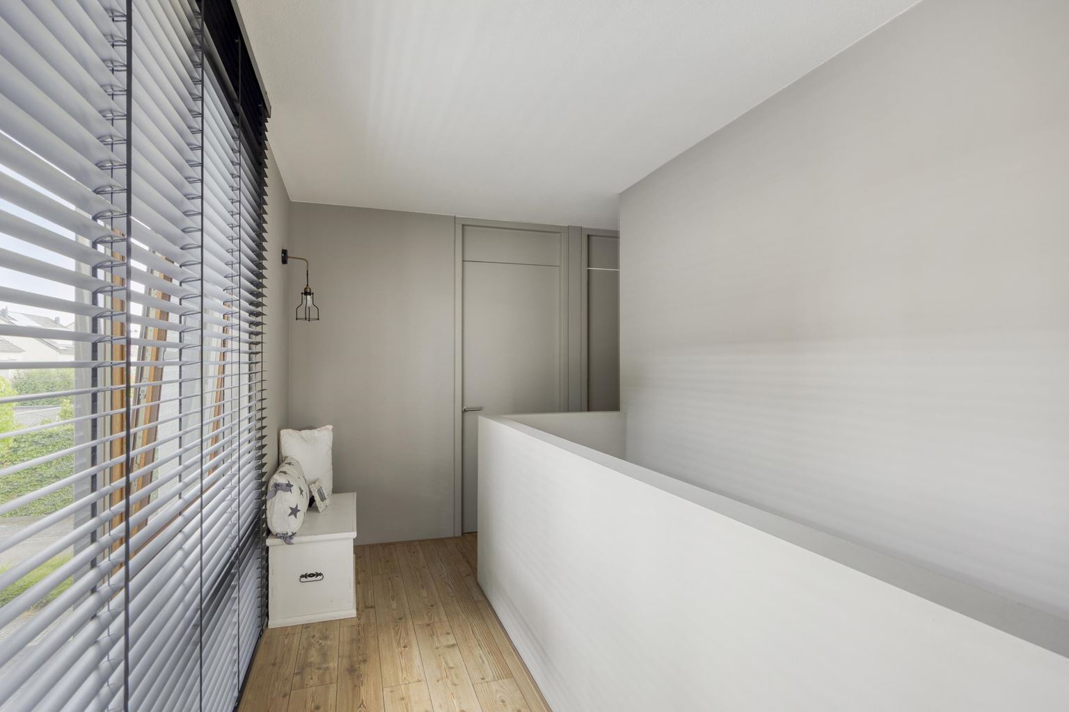 De overloop op de eerste verdieping biedt toegang tot 3 slaapkamers, een moderne badkamer en een separaat toilet. Slaapkamer 1 is uitgerust met een walk-in closet. Slaapkamer 2 heeft grote raampartijen die zorgen voor een overvloed aan natuurlijk licht. Slaapkamer 3 is momenteel in gebruik als werk- of studeerkamer. De badkamer, vernieuwd in 2024, is luxe afgewerkt met een ligbad, een inloopdouche en een dubbele wastafel in meubel.