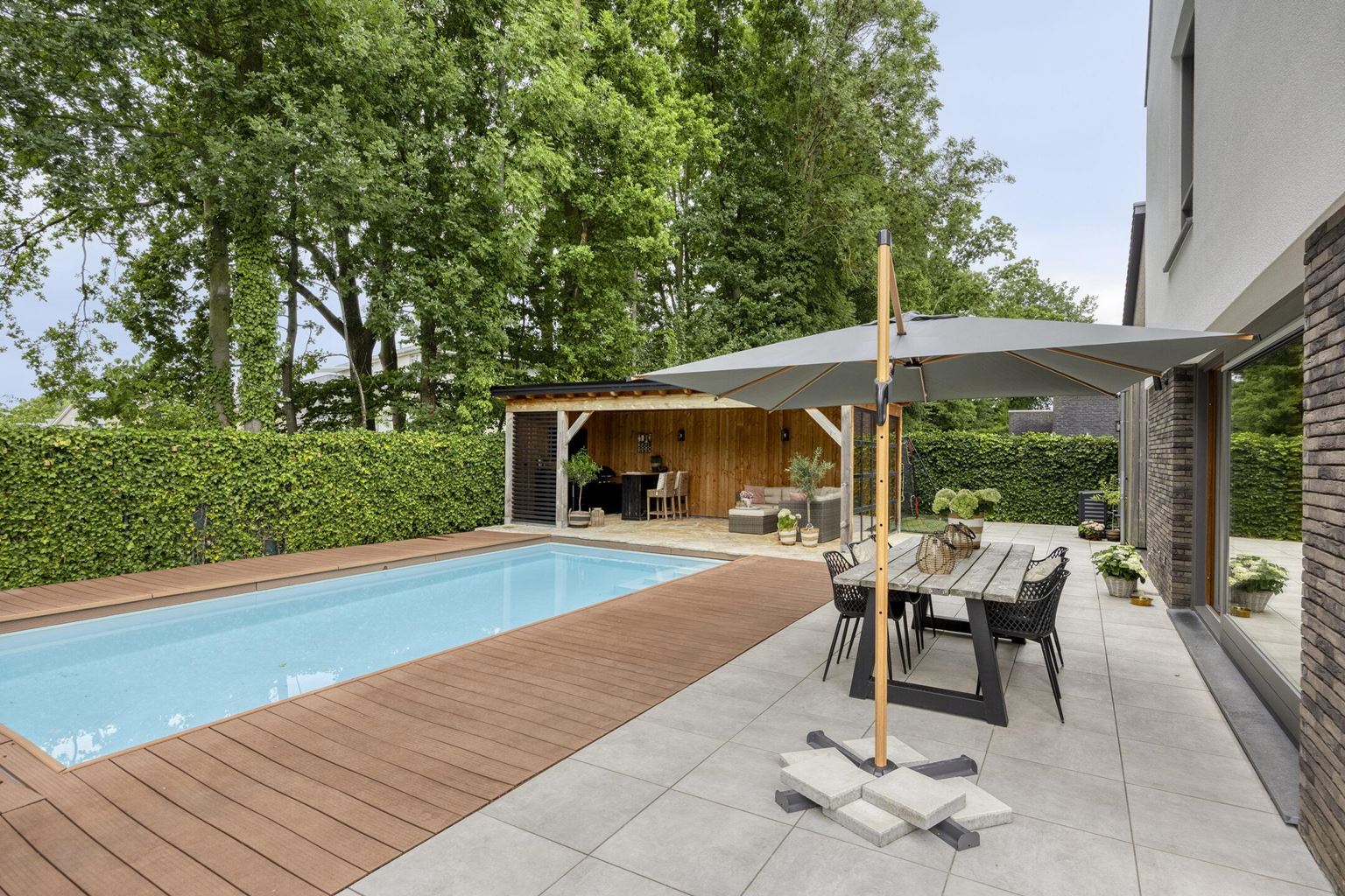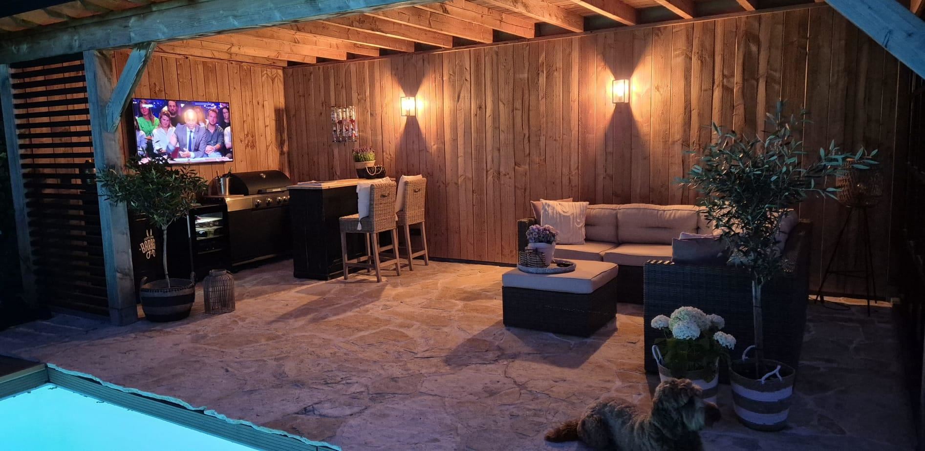 De tuin biedt de perfecte combinatie van luxe en privacy, gelegen op het noordwesten voor de ideale hoeveelheid zon en schaduw. Het in 2018 aangelegde royale zwembad is uitgerust met een geavanceerd zoutwatersysteem. Onder de sfeervolle overkapping, volledig uitgerust met barretje en televisie, kunt u volop genieten van de rust en de totale privacy die deze tuin te bieden heeft. Of het nu gaat om een rustige middag in de schaduw of een gezellige avond met vrienden, deze tuin is de perfecte plek om te ontspannen en te genieten van het buitenleven.